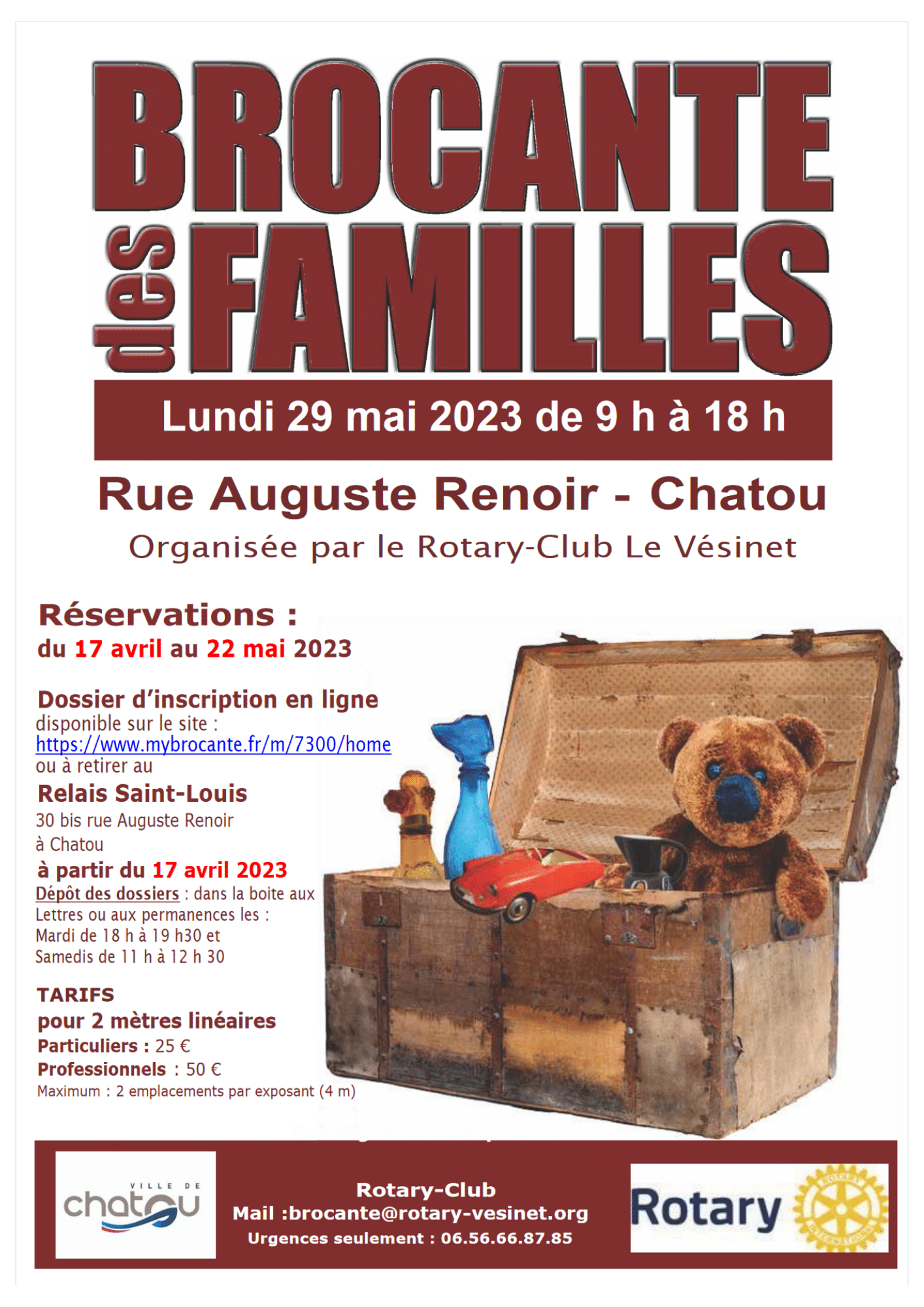 La brocante des familles aura lieu rue Auguste Renoir à Chatou le lundi 29 mai de 9h à 18h